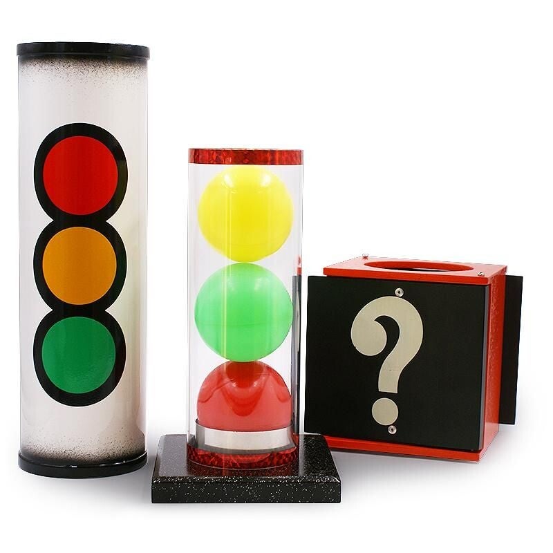 L'illusionista ripete l'effetto una seconda volta raggiungendo, però, lo stesso risultato. Quindi, ci prova una terza volta ma con una variante. La palla rossa, la inserisce in una scatola di legno. Gesto magico e dalla scatola la palla scompare e riappare nei tubi, impilata nel corretto ordine!