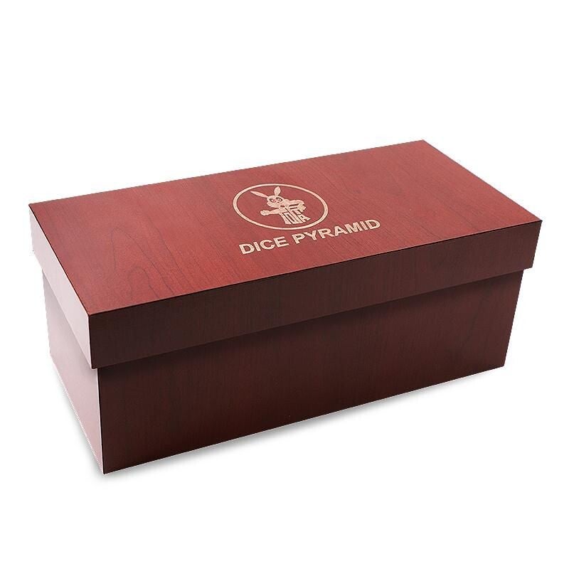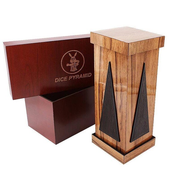 Il mago mostra 4 dadi neri di diversa grandezza. Li appoggia su una base e li ordina mettendoli uno sull'altro, come in una piramide, dal più grande al più piccolo. Poi li copre con un parallelepipedo mostrato vuoto e chiude il tutto con un coperchio. Quindi, capovolge il parllalepipedo e quando mostra nuovamente i dadi, il loro ordine non sarà cambiato! Ripete il tutto più volte, capovolgendo sempre il parallelepipedo, ma l'ordine dei dadi non cambia mai. Per finire, nel mostrare nuovametne i dadi, questi avranno cambiato colore!