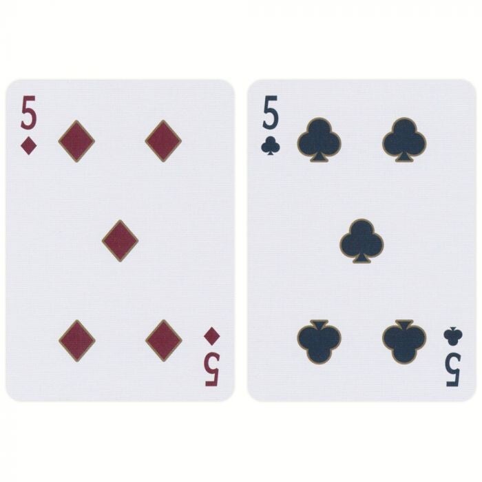 Questo mazzo di lusso include un delizioso astuccio con fondo blu scuro e con l'interno stampato con un elegante motivo a chiave. L'intricato disegno al tratto all'esterno dell'astuccio è stampato a caldo in lamina dorata ed è accentuato dalla goffratura.
