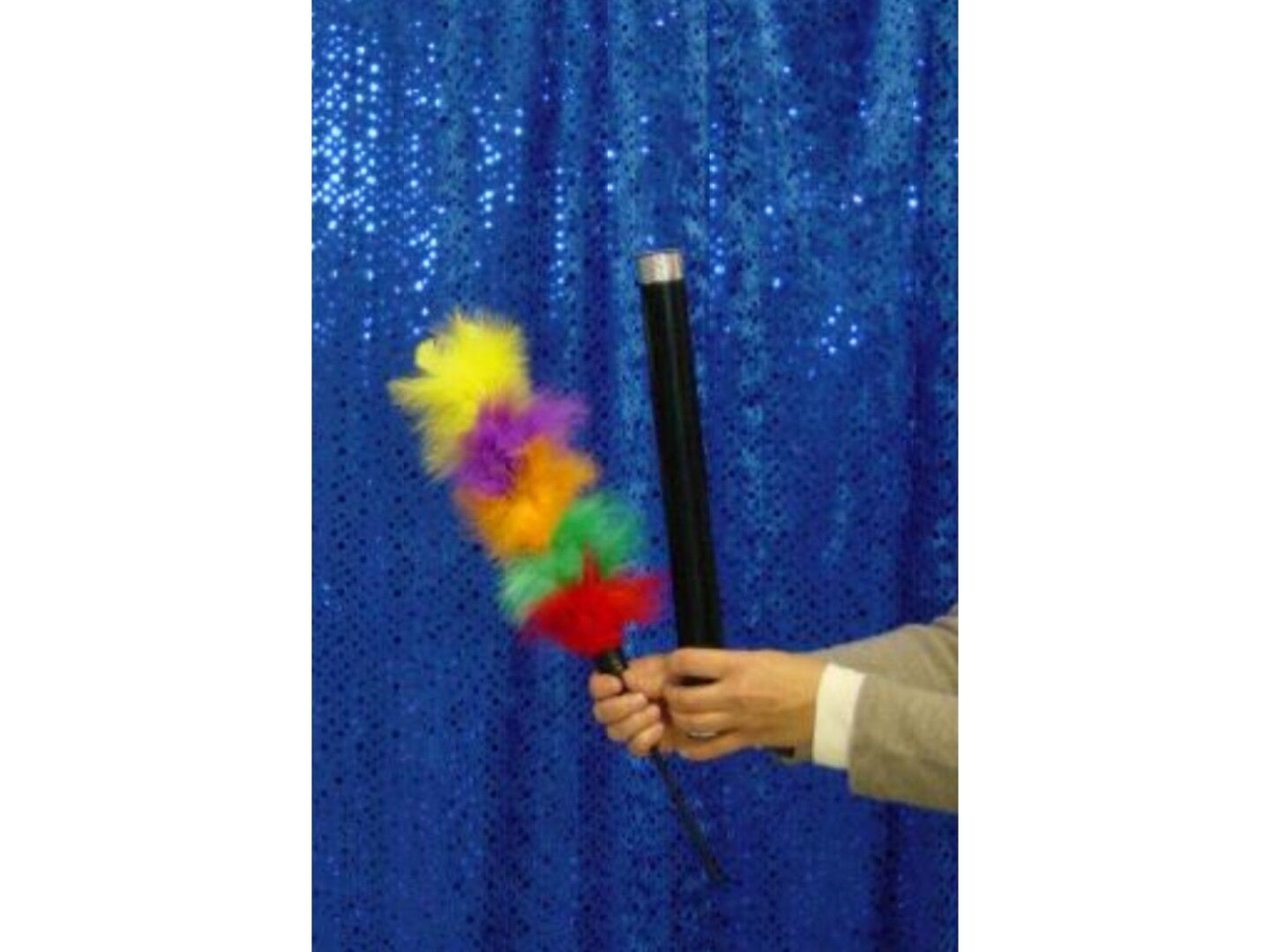 Il mago mostra una grande piuma bianca, che spinge in un tubo d'argento. Chiede ai membri del pubblico di chiamare un colore e, guardando nel tubo, annuncia che la piuma bianca è ora cambiata nel colore scelto, diciamo, rosso.