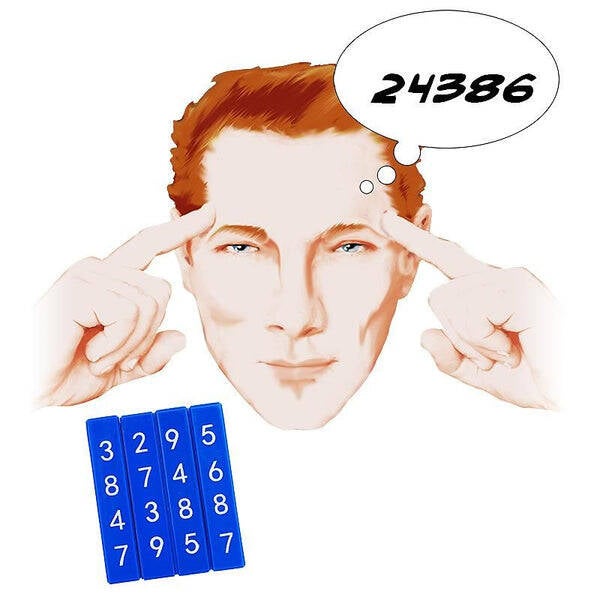 Il mago mostra al pubblico quattro barrette, su cui sono stampati quattro numeri per lato. Queste vengono consegnate ad uno spettatore che dovrà lanciarle sul tavolo diverse volte per costatare che la sequenza dei numeri non sia sempre la medesima. Allo spettatore verrà chiesto di fermarsi quando lo riterrà più opportuno e di prendere il proprio cellulare così da sommare tutti i numeri usciti nell’ultimo lancio. A questo punto, mentre lo spettatore sarà concentrato nell’addizionare i numeri con il cellulare, il mago dirà ad alta voce il totale dopo pochi secondi! Lo stesso esperimento può esser ripetuto varie volte e sempre con risultati diversi.