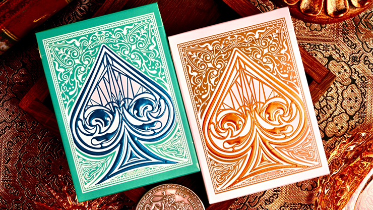 Classico ed elegante sono sinonimi del tempio. Utilizza modelli decorativi classici e dipinti su vetro delle chiese come linguaggio di design, integrando il senso regolare dell'ordine delle linee con decorazioni belle e sontuose. Abbinato a un ingegnoso abbinamento di colori e dettagli - sarà uno dei migliori mazzi di carte da gioco che possiedi.
