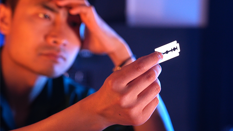 - Routine con lama di rasoio & filo combinata con rivelazione della carta—forte impatto visivo