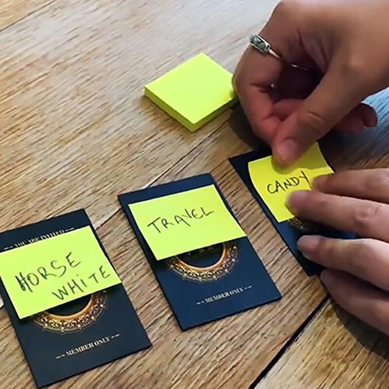 Su un ultimo post-it, invitate lo spettatore a scrivere, per esempio, "UNA CARAMELLA".